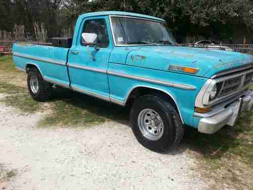 Up for bid is a 1971 F-100 in great running condition it has a 360FE engine. Both the engine and transmission were rebuild. The truck has 4100 miles on the rebuild engine. Its a great work or cruise truck for its age it has normal rust where the paint is flaking but the body is super solid. the only couple of smalll rust holes are in the inside of the bed of the truck. it comes with working radio all lights and wipers and blinkers work clear texas title in hand . Any questions feel free to ask and its a long bed F- 100 BUYER IS RESPONSIBLE FOR SHIPPING. I feel confident that it will drive anywhere but keep in mind its a "71"