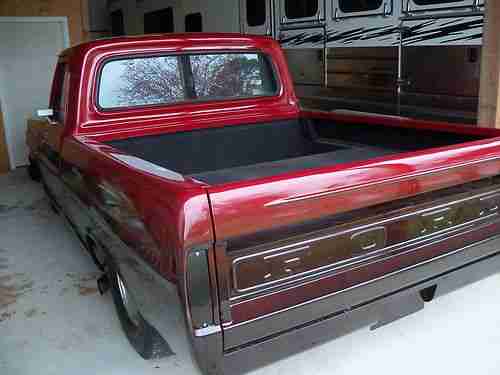 1972 F 100 shortbed prostreet, Complete body off build,Stock centersection of frame Camaro sub frame, 4 link rear, disk on all four corners, flame thrower exhaust, house of kolor paint, full custom interior, this thing is crazy fast.Drive it anywhere and turn heads. the motor is a early 70's 440 Chrysler big block with 727 trans. Didn't want only the Ford and Chevy guys to be upset so to level the playing field , a bad a$$ mopar was installed and actually looks factory. everything was replaced except the roll up glass, new rubbers, front and rear glass all new interior, new custom gauges, new wiring, new fuel system. Paint looks 5 feet deep. this is by far one of the coolest F 100's I've ever seen. this truck is for sale locally so I reserve the right to end this auction early. The truck has clear / open florida title. Call Bill with any questions 334 677 5210 or 334 405 0509
