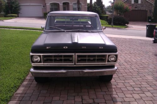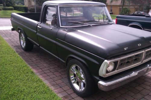 1972 Ford F-100. 302 V-8 with a C4 automatic. Has an 8ft box. Truck runs and drives, no ac, no power windows, no power locks. Truck has been repainted flat black, great shape not a rusted out truck but by no means is it mint. Has 20" Harley-Davidson wheels off of a 2003 Harely F-150. The carb has been rebuilt. Has headers and new exhaust. Tires are half worn. Truck is located in Apopka Fl, and is for sale locally. I will take a 500.00 deposit on paypal and the rest must be cash. Please email me if you have any questions. I can hold the truck for up to 10 days after close of auction. Thanks