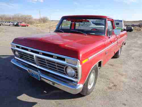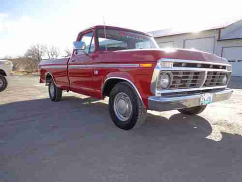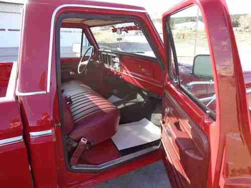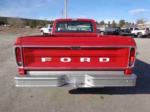 This pickup is a true survivor barn find with a fresh candy apple red paint job!! 58,000 actual miles and drives absolutely beautiful! It has new aluminized dual exhaust with pro plus mufflers (quiet), freshly rebuilt bench seat (foam,springs, ect), factory supplied 390 v8 with rebuilt motorcraft 2 bbl carb, new glass rubbers, new window fuzzies, new cowl seal, new marker lenses, new tail lights, new fuel cap, new tires. We just got this truck rolled out of our body shop, cut and buffed to a mirror shine. Original rims and hub caps have been blasted and recoated to correct color along with hand painted lettering on caps. I left original paint inside the bed to show the extremely clean pickup we had to start with. The undercarriage has been completely detailed. Absolutely rust free!! I'm 33 and didnt have the opportunity to drive a brand new 1973 (new body style) ford pickup, but I can imagine what it was like when I drive this one. This truck drives and handles as smooth as a car and with the 390, there is plenty of power to hook on to your trailer and take it along! Power steering and the big steering wheel make this cat a sweet ride. You will not be disappointed if youre looking for an older original pickup that has extremely low miles, drives, and looks like new! Give me a call if you're interested! My name is Garrett, call me anytime 307-746-4353shop, 307-746-8618cell. Buyer is responsible for transport/shipping arrangements. Thanks for checkin her out!