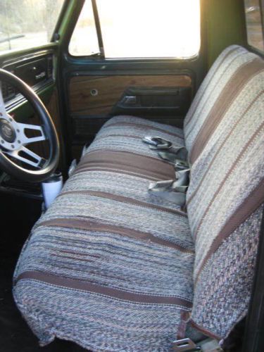 1975 Ford F100 Ranger XLT. It is a 3 speed automatic with B&N speed shifter. 360 Longblock V8 401 Hp engine. Truck was a shell about a year ago and was rebuilt...not to show condition, but did a good job. Chrome is all good,16 in custom wheels, no rust, interior needs some love, but still has everything there. Stereo/cd player with remote needs to be hooked up and needs speakers. You may want to replace the wood paneling on the interior doors and ceiling, but for now it doesn't look that bad. There are cracks in the dash see pictures. The engine is where it's at with this truck. It's strong, never hiccups, starts in 10 degree weather and has never left us stranded. New Flowmaster system,new front-end, new windshield and molding, new alternator & battery. She's fast & loud and tons of fun and easy to drive