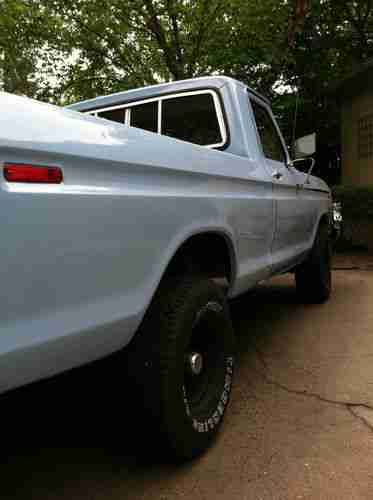 This truck looks and sounds amazing! It runs great and shifts like it should without any problems. The previous owner was my neighbor and owned it for several years. He installed a rebuilt 351w V8 that runs extremely smooth without any problems. This truck has new shocks, brakes (they work fine but need to be bled), windshield, windshield molding, and a spray in bed liner with a lifetime warranty. This truck has been painted recently and it is not show truck quality, but is super glossy and looks good. A few minor dings(very minor, probably will not show up in pics), and has a cd player. No ac, but heat works. This truck is 2wd but has been lifted 2 inches.The frame is in great shape. This truck is an excellent driver, and gets alot of compliments.This is a no reserve auction!!!!!!!!!!! Good luck and thanks for looking. CLEAN TITLE IN HAND! I require cash on pickup and email me through ebay with any questions and I will answer them to the best of my ability.