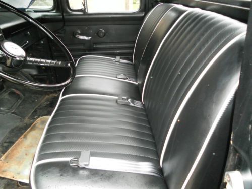 have 1956 ford f100 was running now has knocking on bottom half of motor.clean title is a good project to work on.clean looking truck as you can see.. great interior has digital dash, has a straight six for motor, three on the tree, bed needs to be refinished. NO RUST!!!!! can have more pics on request was going to put a 350 motor but don't have time to fix it right now. is painted with a john deere black paint job. the truck has ben rewired with ditigial dash panel that lights up and is accurate. has seat belts added with new bench seat. new gas tank, needs some tlc.. have lots of paper work that goes with truck