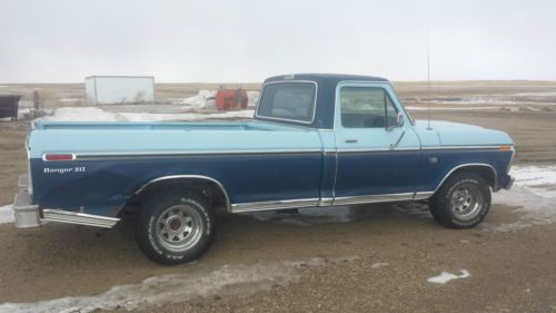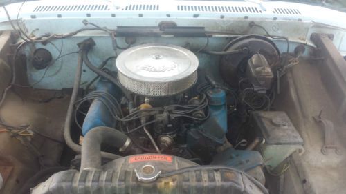 74 F-100. Has a dent in the box and passenger door. Has some rust but not too bad. Needs a tuneup and some exhaust work. Tires hold air, but would probably need different tires for daily driver. Does run and drive but should be trailered home because it quits all the time and needs to be tuned up and timed. This is a project truck.