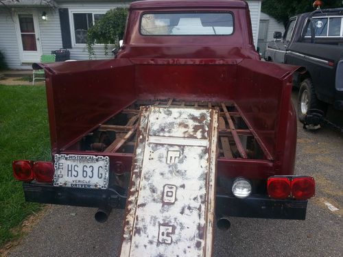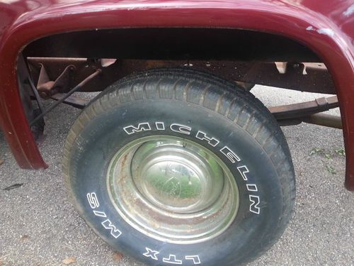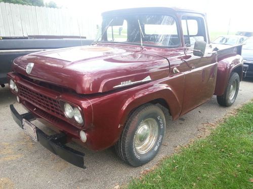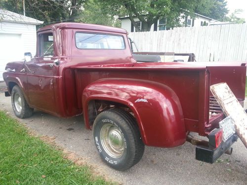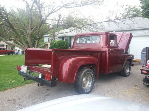 1958 Ford F100 Stepside Pickup Truck 4x2 V6 4 speed automatic transmission. Truck fires up and runs. It has been painted burgundy. Truck is still in great condition. Will need tailgate installed properly and new wood installed in the bed. Good Tires and Wheels. I have a clean title for this Vehicle. Truck is located In NE Cincinnati. Please feel free to contact me with any questions
