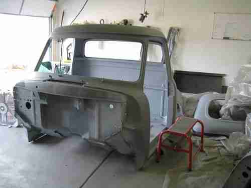 This is a frame off restoration, in progress, I do not have time to complete and cruise it. Title in hand. The body and frame have been media blasted, primed and painted (GM Dove Gray) - everything else is out of the box new. The truck comes complete with all panels, doors, fenders, bench seat, running boards, grille, etc (not in pics). Email me if you have questions or need additional pictures.