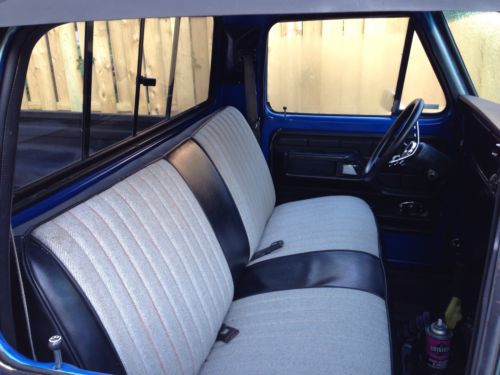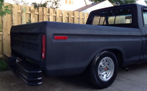 1979 Ford F100 Custom, 302 small block that fires without issue, Rear axle flip kit and front springs cut to lower truck, Less than 6k on a newly rebuilt engine and transmission. Brand new front and rear bumpers and grill shell that has been black powdered coated. Converted from a three speed in the tree to a three speed in the floor with a Hurst Indy shifter. Brand new Holley four barrel 600cfm carb, Summit Racing headers, flow master exuast, edlebrock intake. Southern truck with a very solid frame. Truck is flat black, the hood has recently been primed and painted with a hot rod black, can easly be used as a primor and painted over or cleared as is. All electrical does work with exception of the radio. This is a great first truck for a young teen or project for someone. Selling this truck due to a Army move over seas. Feel free to ask any question. Small dent in drivers door and factory drill holes from the OEM tie down hooks. This truck runs great and sounds every bit as good!