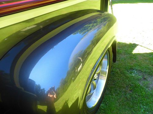 *BODY* The body has tons of modifications such as... Metal front flip clip, shaved door handles and mirrors, shaved fuel spout that was in cab side, completely reworked dash and counsel, Custom firewall made from the original tale gate, entire bed is brand new, 3 inch wider rear fenders, smooth running boards that fit inside rear fender, smooth tailgate with new hardware.