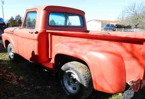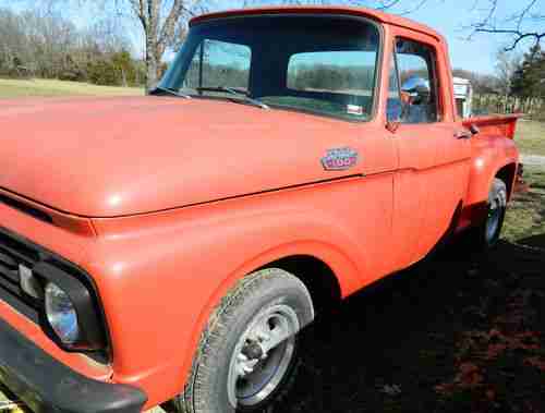 63 f100..straight body..some surface rust..radiator support was bad..we have new one to replace it..truck will make an excellent restoration project. no tailgate..wood bed..3 speed trans..runs and drives..carb is in need of some cleaning