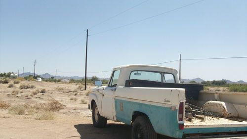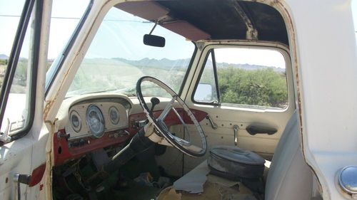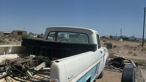 This is a pretty nice old 3/4 ton Ford truck. It is complete with a 292 V8 motor which may run. I have not tried to start it. It has a 4 speed manual transmission. The motor is intact. The cab is rust free except for some rust in front of hood, and pretty straight. The box is a newer model and is a poor fit. Grill and lights rings are very nice. Dash is complete, no missing items. Glass is good except for drivers door glass is missing. There is no title for this vehicle and it is being sold as is where is. May deliver for $2 per mile. Winning bidder will need to make a $300 deposit within 48 hours and pay in full within 7 days of end of sale.