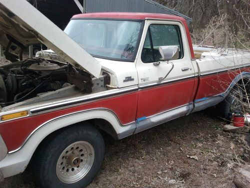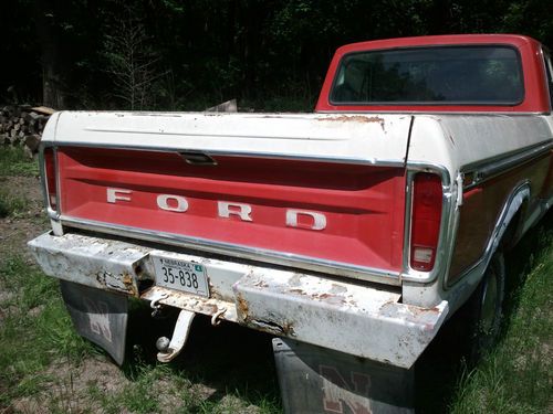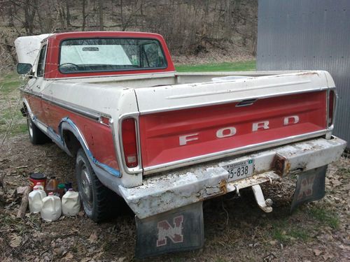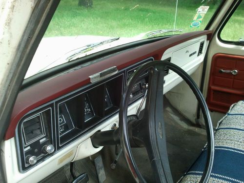 Up for auction is a 1977 F-150 that has been in the family for 15 yrs. It's a project vehicle that needs attention in a few areas. I'll list the good first. It has a rebuilt 351 Cleveland V-8 2 barrel carb that runs good at idle. However it has sat and the carb bogs down on acceleration. It needs to be rebuilt and needs a fuel pump and a tune up. The engine has about 30,000 miles on it and it was installed in 1998 or 97, can't remember exactly. The reason for the low miles is that we used it around the farm to haul stuff. The trans is in good shape and shifts well. The truck has factory A/C that works, but it needs a recharge and the blower motor needs a fuse or replaced. It comes with dual tanks however the rear tank leaks a bit so I only use the front one. All lights and turn signals work as well as the wipers. The interior is in good shape for its age. The body is in OK condition, the cab corners and rockers need to be replaced, the floor boards are good still as well as the fenders. The bed is rough on the outside but solid on the inside. I have 2 aluminum rims for the rear axel and a spare tire to go with. This truck does run and drive but the brakes lock up on occasion, so I would recommend trailering it home. It needs new brakes and wheel cylinders all the way around. It does have power drum brakes on all 4 wheels. The winner can pay by paypal or cash in person. Thanks for looking, if you have questions don't hesitate to ask.