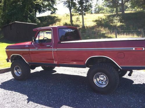 You are looking at a mint condition 1977 Ford F150. This truck had a off frame restoration with all new parts. We have a folder with all the receipts of the parts that was put on the truck. The motor has been has been rebuilt and only has 400 miles since rebuild. It has an Edelbrock intake and holley carb. All new ball joints, u joint, tie rod ends ect. 4" rough country suspension lift, duel steering stabilizers, duel front shocks, new coil springs on front, new leaf springs on rear. All new interior with pioneer stereo system. 35 inch BFG's on 10x15 chrome Bart wheels. All you will have to do is look at the pics and they speak for themselves. |