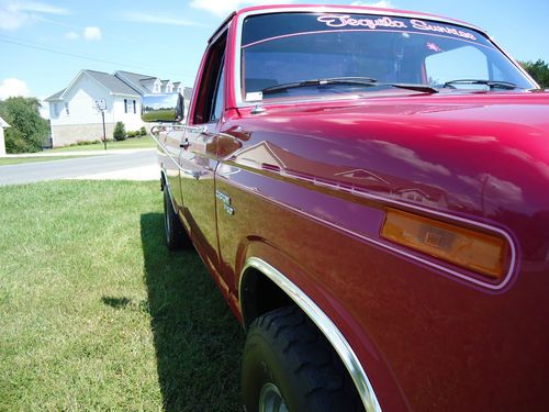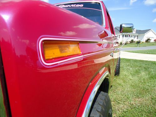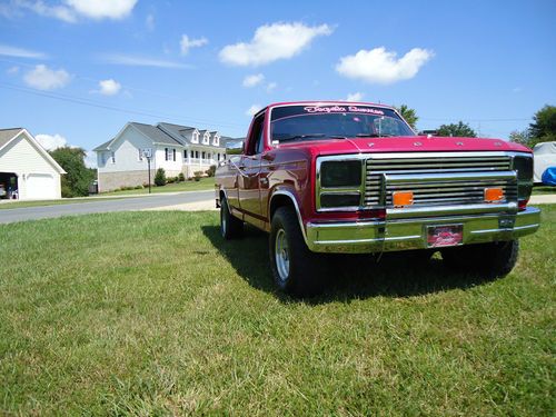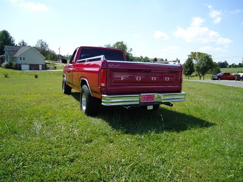 SUPER NICE 80 F 150 4 X 4 WITH 393 CUBIC INCH MOTOR WITH DART CAST IRON HEADS ,ROLLER ROCKERS AND EDELBROCK AIR GAP INTAKE WITH 750 DEMON CARB. CERAMIC COATED HOOKER HEADERS WITH 850 MILES ON BALANCED AND BLUE PRINTED MOTOR SPENT 4500.00 ON MOTOR CENTERFORCE CLUTCH WITH BULLDOG FOUR SPEED TRUCK HAS SUPER SLICK PAINT JOB BASE COAT CLEAR SUNRISE RED A FACTORY FORD COLOR ,RED INTERIOR WITH CUSTOM SEAT .TRUCK RUNS AND DRIVES EXCELLENT ... TRUCK HAS LOTS OF NOS PARTS INSTALLED ON IT TRUCK NOT BEEN IN ANY WEATHER IN 25 PLUS YEARS BEN STORED INDOORS .PLEASE EMAIL WITH ANY QUESTIONS RESERVE IS A WHOLE LOT LESS THAN I HAVE IN IT SPENT OVER 25,000.00 ON TRUCK ......PLEASE CALL 423-367-4918 6.00 TO 3.15 WEEKDAYS AFTERNOONS AND WEEKENDS 423-276-5897 LEAVE MESSAGE IF NO ONE PICKS UP NEW FRONT BRAKE JOB