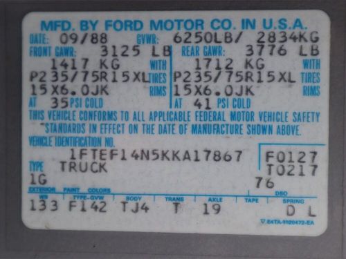 VIN (Vehicle Identification Number): 1FTEF14N5KKA17867
