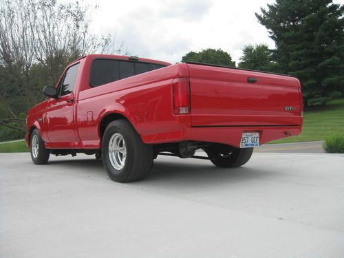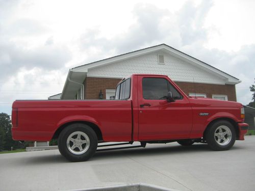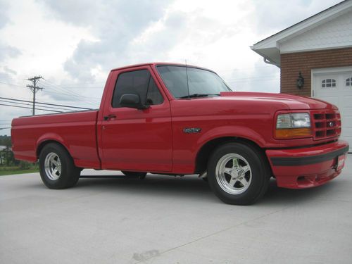 1993 Ford Lightning Pickup. I am the second owner. It has 33,300 miles on it. My intentions were to make this truck a show cruiser and drag truck. Years later, it's all done. The engine is a 351 stroked out to a 383. Has 76 mm turbo Vick Jr. Heads and intake. Water cooled inner cooler. List goes on and on. Headers and all the pipe for the turbo are powder coated. Engine work was professionally done by Chad Epperson in London,Ky. Engine was dynode at 576 at the fly wheel at 5 pounds a boost. And capable up to 25 pounds a boost. Transmission is a C4 reverse valve body still on the column--works really good. Transmission was built by Cowan Transmission in Cocomo, In. and it will handle the power with no problem. Body was really nice but I wanted better. All rubber seals, windows, doors are new. Truck bed and all the glass and the doors were removed and repainted. (No rust period.) Very nice. All paint work was done by Shane Mosley in London,Ky. It was taken to the quarter mile track. I ran 3 passes . It ran 11.50 at 117 m.p.h. with air condition on. I am 50 years old and now I have a God sent 3 year old girl. She gets all my time now, so the truck just sits in the garage and it's time to sell it. 606-862-4281