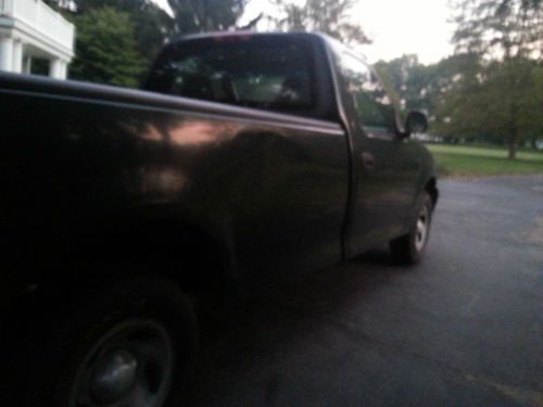 This is a hunter green 2002 Ford F150 XL with a full size 8' bed. It comes with a bed liner and is fully capable of hauling anything you can throw on it. It's in excellent condition, purchased from the county auction and have taken care of it with new brakes/rotors, tuned up and transmission serviced. Has an upgraded radio installed with bluetooth and iPhone/iPhone usb plug. Few things to note: the ABS light is on, the AC needs recharging, and there is a dent on the passenger side bed (can be repaired without repainting), some rusting (which is common on these trucks by the lower bed corners). It can last another 100k miles. Currently has 134k miles on it, don't drive it much and have a clean and clear title to go with it. Serious buyers only!