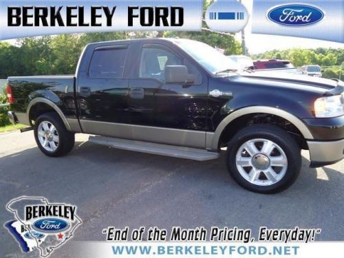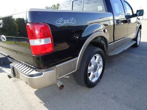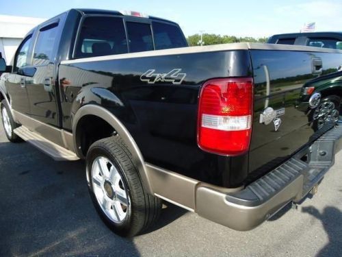 King Ranch Package (Arizona Biege Platform Running Boards, Black Power-Fold Heated Signal Mirrors, Color Coordinated H-Bar Grille, Front Flow-Through Console, Power Adjustable Pedals w/Memory, Second Row King Ranch Leather Flip-Up 60/40 Bench, Simulated Woodgrain Trim, and Unique King Ranch Tailgate & Fender Badges), Trailer Tow Package (a Heavy Duty 72 Amp Battery for those cold mornings, Upgraded Auxiliary Transmission Oil Cooler, and Upgraded Radiator), ABS brakes, Alloy wheels, Heated door mirrors, Illuminated entry, and Remote keyless entry. In savings have already been applied to the MSRP on this vehicle. Don't pay too much for the terrific-looking truck you want...Come on down and take a look at this outstanding-looking 2006 Ford F-150. It scored the top rating in the IIHS frontal offset test. Life is full of disappointments, but at least this superb Ford F-150 will always be there for you and never let you down. New Car Test Drive called it ...the classiest, quietest, most completely equipped pickup truck interior we have ever spent time in... This F-150 is nicely equipped with features such as King Ranch Package (Arizona Biege Platform Running Boards, Black Power-Fold Heated Signal Mirrors, Color Coordinated H-Bar Grille, Front Flow-Through Console, Power Adjustable Pedals w/Memory, Second Row King Ranch Leather Flip-Up 60/40 Bench, Simulated Woodgrain Trim, and Unique King Ranch Tailgate & Fender Badges), Trailer Tow Package (a Heavy Duty 72 Amp Battery for those cold mornings, Upgraded Auxiliary Transmission Oil Cooler, and Upgraded Radiator), ABS brakes, Alloy wheels, Heated door mirrors, Illuminated entry, Remote keyless entry, 3.73 Axle Ratio, 4 Speakers, 4-Wheel Disc Brakes, 4X4, Air Conditioning, AM/FM radio, AM/FM Stereo/Clock/Single CD, Auto-dimming Rear-View mirror, Automatic temperature control, Bumpers: chrome, CARFAX CERTIFIED... NO ACCIDENTS, CD player, Chrome Exhaust Tip, Delay-off headlights, Driver door bin, Driver vanity mirror, Dual front Used Vehicle prices include a $295.00 Closing Fee. All prices are plus tax and tag fees.