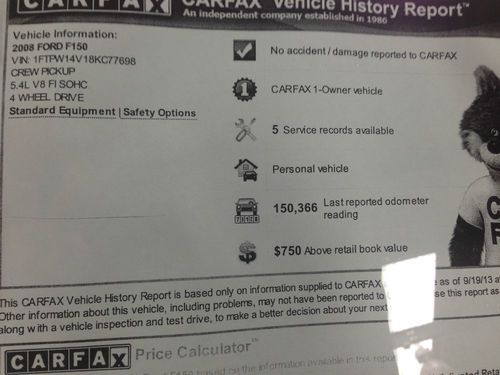 2008 Ford F-150 King Ranch 4x4 Supercrew 5.4l , Sunroof, 1 Owner, No Accidents! on 2040-cars
