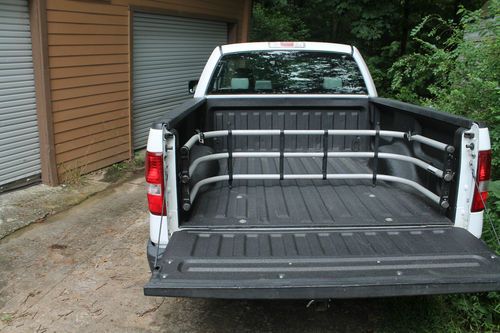 Features: The big Ford Super Crews with four full size doors and large back seats are equipped with a 5'5" bed, but this special order "Cavalier" model comes with a 6'6" Style side bed, trailer tow package and work truck package. I had the standard Ford bed liner removed and replaced with the Line X spray on bed liner. The aluminum bed extender adds over 2' of additional length for those longer loads. The 4" Trail FX Wheel to Wheel Stainless, 3 step Nerf bars are very sturdy and give easy access to the cab and even the bed from the side of the truck.