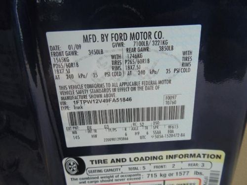 VIN (Vehicle Identification Number): 1FTPW12V49FA51846