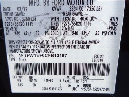 VIN (Vehicle Identification Number): 1FTFW1EF6CFB13187