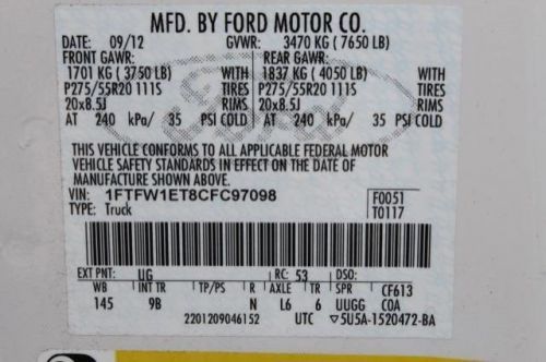 VIN (Vehicle Identification Number): 1FTFW1ET8CFC97098