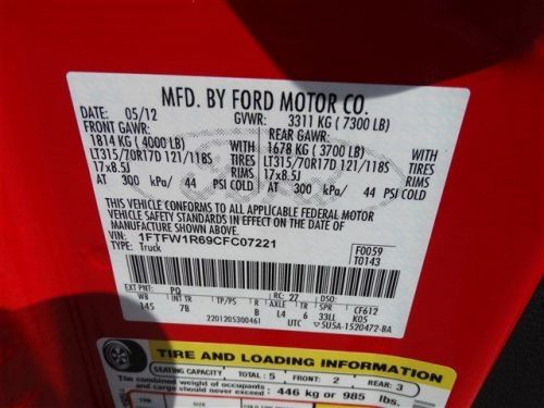 VIN (Vehicle Identification Number): 1FTFW1R69CFC07221