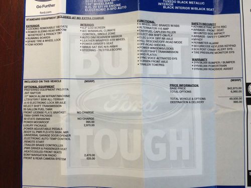Rather than take forever typing in all of the features, I am also posting a picture of the original stickers of the truck. I see other ones listed on here with 20-40k on the odometer....this just hit 9k. YOU CAN"T FIND ANOTHER TRUCK LIKE THIS ONE< THIS CONDITION< THIS MILEAGE< OR THIS PRICE!!!