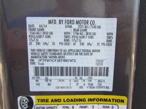 VIN (Vehicle Identification Number): 1FTFW1CF3EFB67472