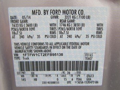 VIN (Vehicle Identification Number): 1FTFW1CT2EFB95138
