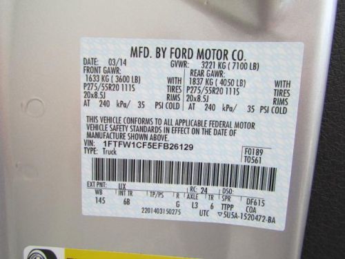 VIN (Vehicle Identification Number): 1FTFW1CF5EFB26129