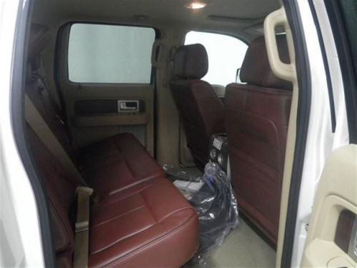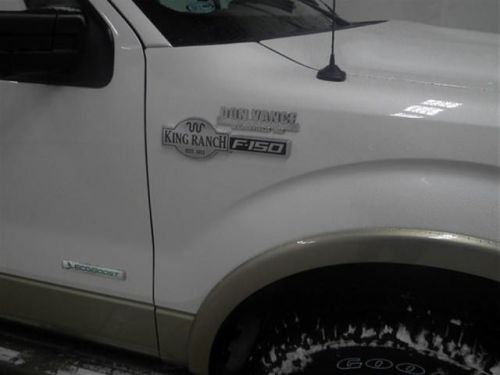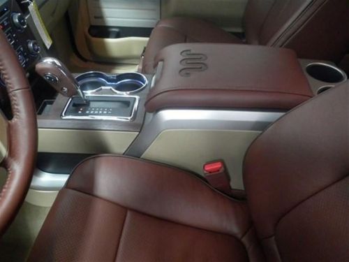 Tinted windows, front tow hooks, side step running boards, fog lamps, 18 inch aluminum styled rims, power moonroof, tow package, rear obstacle detecting system, a rearview camera, and HID headlights. 4WD. 4DR. Engine is a 3.5L V6 with EcoBoost. External color is a White Platinum Metallic Tri-coat. Premium King Ranch Saddle Leather covers all the interior. Front seats are bucket style, rear are a regular bench. Front seats are heated and fully powered. NAV, 4.2' touch screen, remote start, deployable tailgate step, turn signal mirrors, power fold mirrors, USB, Auxiliary, Blutooth, CD media, Sirius XM radio, and on-wheel audio/cruise controls.