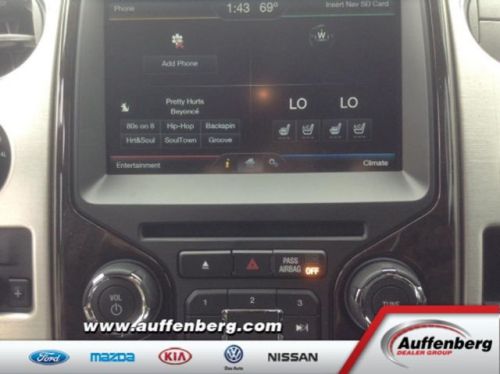 4WD, ABS brakes, Alloy wheels, DVD-Audio, Electronic Stability Control, Front dual zone A/C, Heated door mirrors, Heated front seats, Heated rear seats, Illuminated entry, Leather, Low tire pressure warning, Navigation, Navigation System, Remote keyless entry, SYNC Voice Activated Communication & Entertainment, and Traction control. There isn't a better truck than this stout 2014 Ford F-150. Climb into this trusty F-150 and get some work done, PRONTO! WE WILL NEVER BE UNDERSOLD! Auffenberg Ford North has the area's best New selection of Fords. Mustangs, F150, Fusion....the list goes on and we have them ALL! Cars, Trucks and SUV's. We offer superior sales and service for our valued customers. We are committed to serving our friends and customers and look forward to hearing from you