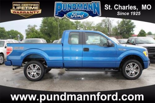 Call Now, 877-563-9167 Only At Pundmann Ford!! Meet our 2014 Ford F-150 STX SuperCab 4WD finished in Blue Flame Metallic. Under the hood is a 360 horsepower 5.0 Liter V8 engine paired with a 6 Speed Automatic transmission with Tow/Haul mode that gives you all the power you need to handle any job. Our 2014 F-150 STX offers a tough truck that is gentle on your wallet for a powerful, full-size 4WD pickup giving you19 mpg on the open road. Inside our 2014 F-150 STX 4WD you will find comfortable cloth seating, power windows and locks, AM/FM/CD/MP3 audio with SYNC voice activation, tilt steering wheel, cruise control, plenty of storage spaces and plenty of room for your passengers. The STX trim adds exterior features that include fog lamps, a chrome step bar, 20-inch machined aluminum wheels and much more. Ford always comes through with safety and F-150 ranks at the top. Its high strength steel safety cage keeps you secure along with 6 standard airbags, SOS post crash Alert, Trailer Sway and Roll Stability control and anti-lock brakes. It has everything you could ask for in a full-size truck. Whether it's for work or play, you have made an excellent choice with this F-150 STX. Print this page and call us Now... We Know You Will Enjoy Your Test Drive Towards Ownership! Pundmann Ford in St. Charles, MO, is proud to be an automotive leader in our community. Since opening our doors, Pundmann Ford has maintained our solid commitment to our customers, offering the widest selection of cars and trucks and ease of purchase.Pundmann Ford, Since 1925