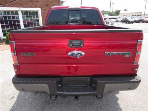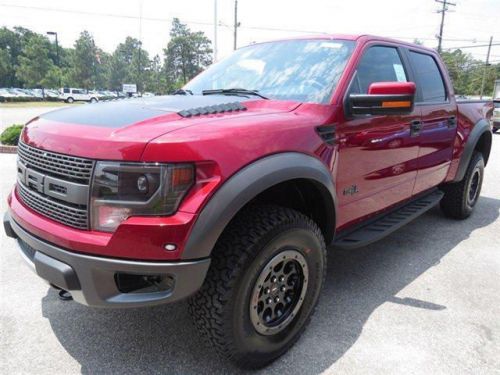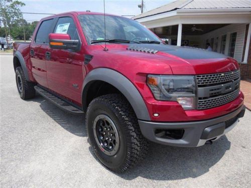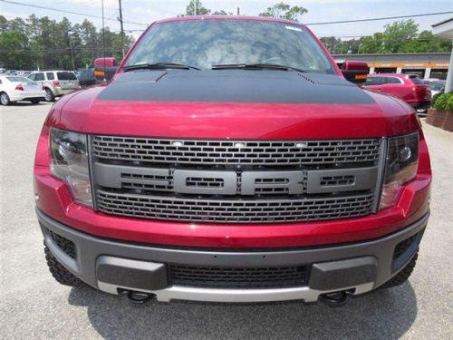 This 2014 Ford F-150 4dr 4WD SuperCrew 145 SVT Raptor 4x4 Truck features a Engine: 6.2L 2V EFI V8 8cyl Gasoline engine. It is equipped with a 6 Speed Automatic transmission. The vehicle is Ruby Red Metallic Tinted Clearcoat with a Black with Brick Red Accent interior. It is offered with a full factory warranty. - Cruise Control, Tinted Windows, Power Door Locks, Leather Shifter, Tachometer, Digital Info Center, Tilt Steering Wheel, Steering Wheel Radio Controls, Side Airbags, Keyless Entry, Security System, ABS Brakes, Traction Control, Dynamic Stability, Rear Defogger, Fog Lights, Four Wheel Drive, 6.2L 2V EFI V8, Part-Time Four-Wheel Drive, Power Rear Windows, Front Cupholder, Rear Cupholder, Front Cigar Lighter(s), 3 12V DC Power Outlets, Compass, Keypad, HVAC -inc: Underseat Ducts and Console Ducts, Glove Box, Full Cloth Headliner, Leather/Chrome Gear Shift Knob, Interior Trim -inc: Metal-Look Instrument Panel Insert, Day-Night Auto-Dimming Rearview Mirror, Full Floor Console with Locking Storage, Fade-To-Off Interior Lighting, Front And Rear Map Lights, Full Carpet Floor Covering -inc: Vinyl/Rubber Front And Rear Floor Mats, Pickup Cargo Box Lights, Instrument Panel Bin, Power 1st Row Windows with Driver And Passenger 1-Touch Up/Down, Delayed Accessory Power, Analog Display, Outside Temp Gauge, Front Center Armrest, Manual Adjustable Front Head Restraints and Manual Adjustable Rear Head Restraints, 2 Seatback Storage Pockets, 6-Way Power Adjuster (Driver's Side Only), 3 12V DC Power Outlets and 1 AC Power Outlet, Regular Box Style, Full-Size Spare Tire Stored Underbody with Crankdown, Clearcoat Paint, Black Front Bumper with Body-Colored Rub Strip/Fascia Accent and 2 Tow Hooks, Black Rear Step Bumper with 2 Tow Hooks, Black Side Windows Trim and Black Front Windshield Trim, Black Door Handles, Black Fender Flares, Black Grille, Tailgate Rear Cargo Access, Manual Tailgate/Rear Door Lock, Cargo Lamp Integrated with High Mount Stop Light, Perimeter/Approa ...