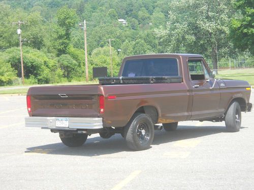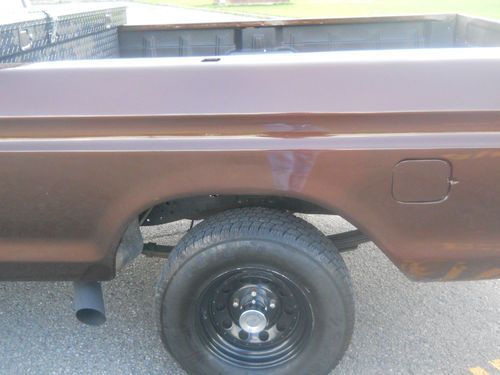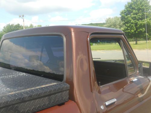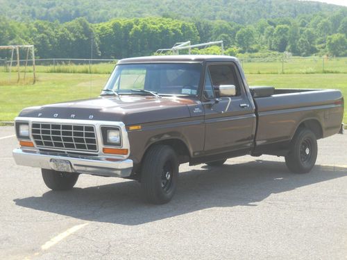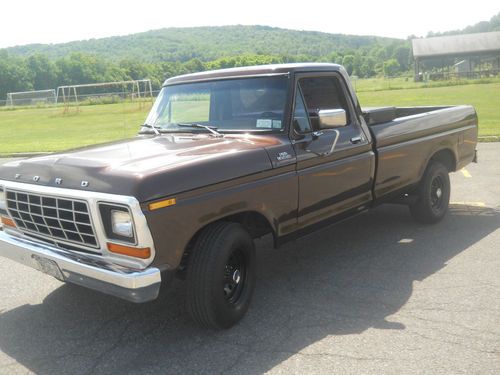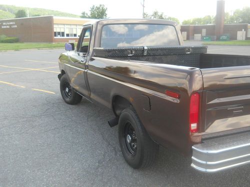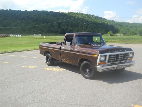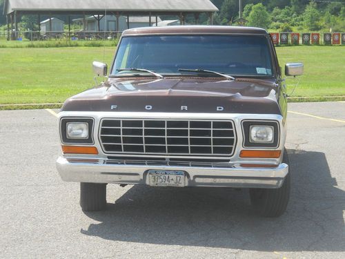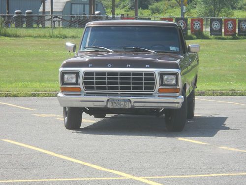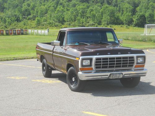 I am selling my 1979 Ford F-150. It is 2wd drive. This truck was from Florida. Its been in New York for 2 years now and has not been driven in the winter. As you can see in the pictures the body is super solid and all oem. There is no welded panels on this truck what so ever. Take a look at the floor boards and cab mounts in the pictures they are all original and spotless. Cab corners have the factory spot welds at the very bottoms which is what you want to see. Truck is a real head turner the paint is bronco brown with a lot of gold flake which you cant really see in the pictures but the gold flake really looks good when the sun hits it. The inside of the truck has not been painted but is in nice shape other than the steering wheel which is a little cracked not a big deal I just never got to getting around to putting a new one on also the speedometer is not accurate. The Frame and chassis on this truck is also super solid has all been painted. There is no pits or rust scales on the frame it is nice and smooth. has all solid brake lines gas line gas tank and brand new fabed tranny lines. The motor is a strong running 351 V8 with a C-6 automatic tranny. Motor has no knocks smoke or oil leaks to speak of. Has newer headers and dual 30 series flow masters that come out to 4 inch before the back tires. Truck sounds amazing driving down the highway tons of power!!!! How you see the truck in the pictures is how you will get it is garaged and not being driving due to the auction. I am not selling it locally as I have it here on ebay. I really do not want to this this truck because I really don't think I am going to find another as solid as this one but I work 6-days a week and it really is not being driven hardly at all anymore. Truck is Oem solid top to bottom bumper to bumper. If you have any questions please call or text 607-201-7285.