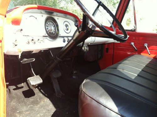 For your consideration, a 1962 ford Unibody truck with the V8 and the 4 speed. Ford attempted to attach the tuck bed to the cab in 61 and 62 and unfortunately it created body flex problems for people using the truck for hauling loads, which is generally why people get a truck to begin with. The trucks looked great, but soon truck buyers were aware of the problem and it was discontinued in 1963 to return to a separate bed. Unibody ford trucks have become quite sought after as they look great and they are still strong enough for most purposes.