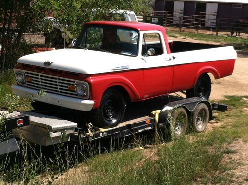 This truck was a rust free Colorado truck in Pueblo. In fact, it was in such nice condition that it was hard not to completely repaint and detail the undercarriage. The miles are unknown, but the engine starts instantly and has full compression, it is the original 292 Y block. We pulled the engine to detail it and it didn't even have a leak. The 4 speed shifts perfect and we detailed it. The interesting thing about this truck is being an F250, 3/4 ton. Most survivors are more likely to be the F100 driven more as a car than used as a full work vehicle. Hauling heavy loads could bend the cab but this one was quite straight. We did put in new kingpins and they need to break in, but the truck is ready for show or go. The drive train is very sound, an overhaul just was not justified. It has new paint, new glass, new seals, complete detail and everything kept as original except for the bed liner. There were a few bumps and bed liner just made sense. This is a very interesting truck and quite original. It's a solid base to build a modified but the originality makes it a great show truck. Even has the original tailgate. It's also street legal but advisable to trailer it if you are an out of state buyer.