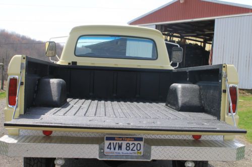 1966 Ford Camper Special 4X4. Frame off restoration. 400m engine. Edelbrock 750cfm carb. Edelbrock intake crane preformer Cam Duration- INT: 204 degrees EXT: 214 degrees Lift- INT: 486 degrees EXT: 512 degrees. Competition Springs valve springs. Stock crank, pistons, and rods. Edelbrock high flow oil pump. MSD distirbutor wires and ignition. Dana 60 rear, Dana 40 front. 353 gears. Stock C6 transmission. Bedliner coating in bed, under entire body and fenders. 1978 Frame and running gear. 2,314 miles since rebuild. Current mileage showing on odometer: 39,608. Lifetime mileage unknown. For questions Call 304-387-294four ask for Scott