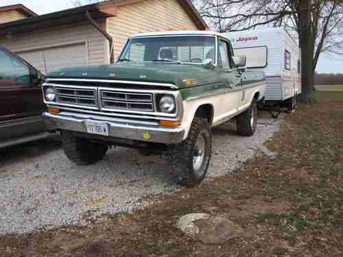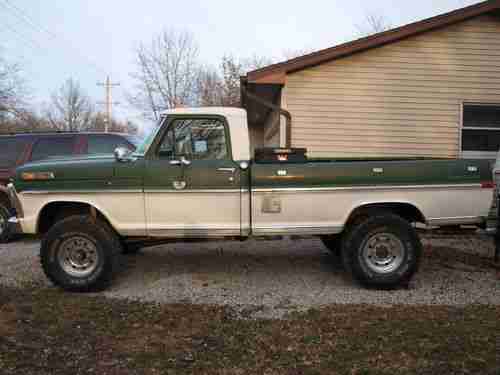 1972 ford f250 ford high boy sport custom 390 v8 auto ps, pb a/c 10000 miles on engine rebuild, 5k miles on mickey thompson m/t 35x12.50s on 96 ford aluminum refinished wheels, new eldlebrock carb new bed mat new floor mat new exhaust... runs and drives good i wouldnt be afraid to drive it anywhere. finding a highboy with auto ps, and pb and a/c is tough for these models, electronic ignition, new alt also