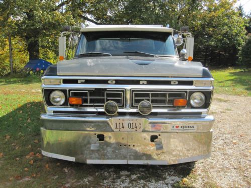 1976 Ford F250 Crew Cab. The motor is a 460 not the original 390 and was rebuilt w/20,000 miles. A one owner vehicle, bought new, and only driven by the adult owner. Dual 40 gallon gas tanks were added as well an 8ft. box replacing the original 6.5 ft. box. The truck has a topper, lock outs, and a bumper from a Kenworth tractor.