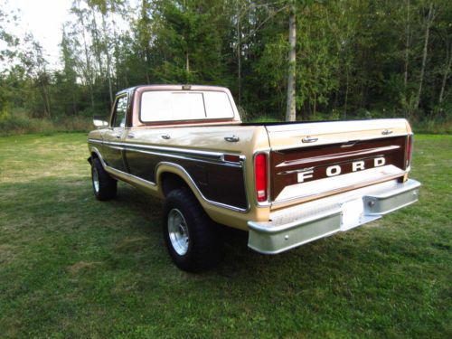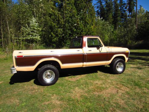 One owner 4 speed manual transmission. Here is a nice 1978 F250 Ranger 4X4. This is a hard to find, one owner truck that was well cared for. It is a good running and driving truck that has the original 400 V8, 4 speed manual transmission with granny low and NP205 transfer case. Truck also has power steering, 33" tires and a bed liner and the four wheel drive works great. It also comes with the original paper work from when it was first purchased from the dealer. The original seat does have some tears from age, mostly on the drivers side. I have a seat cover on it but I did remove it in one of the pictures so you could see it. I have included a lot of pictures so look at them all and ask any questions you may have before bidding. Serious bidders only. Zero feedback bidders please contact me first before bidding. Thank you. ***** Payment Details ***** I require a $1000 deposit within 24 hours after auction close by Paypal and full payment must be received within 72 hours with certified cashiers check! This truck is being sold in as is condition with no warranty! All funds must clear before I release truck and title. I reserve the right to end auction early. ***** Shipping Details ***** The buyer is responsible for paying for the shipping of this vehicle, however if the buyer needs assistance arranging a Shipper/Auto Transporter, I'd be more than happy to help out to make this transaction as smooth and as easy as possible. |