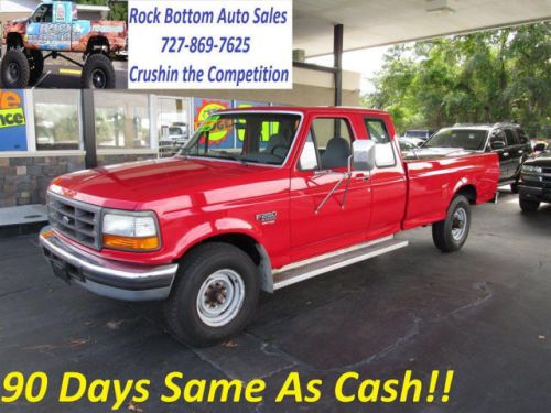 7.3l PowerStroke Turbo Diesel!! Legendary power from the Turbo Diesel and teamed with a smooth shifting automatic w/ overdrive transmission, super cab XL, Bright red ext paint shines like new and surrounds a spacious gray int with seating up to 6, easy clean H.D. viynl floor, ice cold air, power point to keep evrything charged, dual tanks for the long haul, tilt wheel and cruise control for worry free driving, diamond plate running boards and tool box, am/fm cd audio, 8' bed for stability, like new fifth wheel hitch and reese hitch for all your towing needs and like new tires!! This one has everything you need and priced to sell at only $7999!! VISIT OUR WEBPAGE FOR MORE PICTURES: http://www.rockbottomautosales.net/ CALL FOR APPOINTMENT 888-510-7708 ROCK BOTTOM AUTO SALES 18638 US HWY 19 HUDSON FL 34667 $750.00 DOWN DELIVERS MOST CARS TRUCKS SUV'S W.A.C. CALL FOR DETAILS VISIT OUR WEBPAGE TO SEE ALL INVENTORY http://www.rockbottomautosales.net/ 888-510-7708