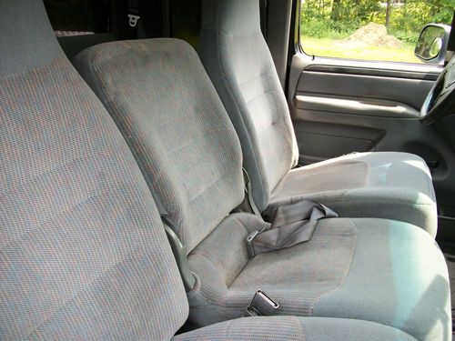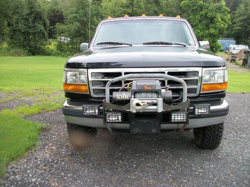 Truck has had routine maintenance. Two years ago new ball joints were installed as well as the Power Control Module replaced with a rebuilt unit. New headlights were installed last year. The tires are 2 yr old Cooper Discoverer STT 265-75-16 with only 2000 miles. LOTS of tread left (see photos). Exterior paint is black over grey with minor surface scratches on it that may not show in pictures. Interior is grey cloth seats and grey carpet. The carpet does have slight wear and tear. A thorough detail will resolve most of the stains. The Front seat includes a flip down center console. The push bumper mounted on the front of the truck includes an approximately 2 year old Mile Marker 9500 lbs winch (control included) and 4 square off-road driving lights. The bed floor is lined with 1/4 inch thick rubber bed liner. Also included inside is a Ford Deluxe Idle Control Module. Mounting bracket and instruction booklet included. Rear windows have privacy tint on with minor scratching on the tint.