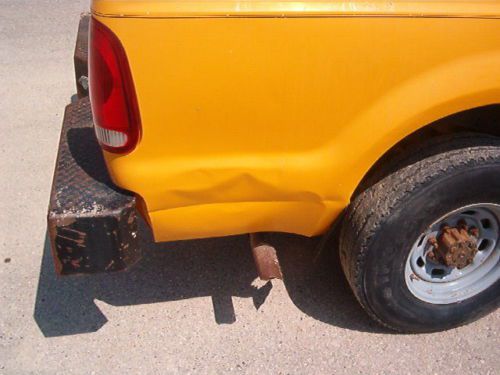 1999 Ford F250 Super Duty 2X4 pickup. Gas V8, automatic. 238,000 miles. Unit is in overall fair condition. Defects include bent front bumper, dent in right front fender. Tailgate is bowed. Dent in lower right rear fender behind tire. Instrument panel will cut in and out occassionally. Recent engine and transmission replacement. Some play in steering. Starts well. Runs and drives well. Unit has new battery. Reese trailer hitch. Bed liner.