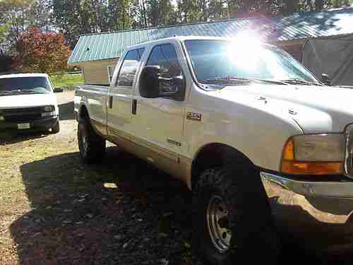 This is my 2001 f250 ive had it almost a year and its just to big for me for what i need. It has a set of 35 inch nitto tires on 16 inch bullet hole polished wheels. It has a brand new leveling kit. Also the windows are tinted all legal. It has been straight piped but otherwise no performance mods on this truck ever so it hasnt been run to death. It has a spray in bedliner with gooseneck ball in bed. It also has a sliding bedcover and back up sensors. The side steps are brand new just put them on in december. The truck is in great shape no body damage i think it has 2 dents on tailgate and a scratch on the door otherwise looks good. As far as the interior goes it has leather and heated seats the drivers seat is worn but its a 12 year old truck, It does have the slide out towing mirrors. 6 disc cd player. The only thing the truck will need is a set of tires before long i drove it in the snow a couple weeks ago it did fine but will need some before too long. Also it may need front shocks otherwise is ready to go any questions message me on here or my email is duramaxdot@yahoo.com Thanks