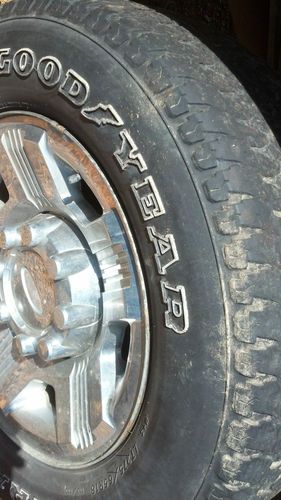 Tires are about 15% 10 ply Goodyear. Truck was fitted with 18inch factory ford, to replace the stock 16's with wheel offset adapters. Front wheels do rub wheel wells on tight turns, I've just dealt with it. Have original rims I believe as well. Truck has a decent aluminum tool box. Truck is a work truck and I am a General Contractor. The dings and such are reflective of it. Has a $50 part which interupts the signal to something and helps with a bit more power. I usually leave it off, gets 18 mpg or so.
