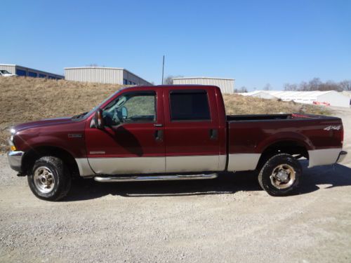 This is a 2004 F250 Lariat 6.0 Diesel Crew Cab with only 97,989 original miles. This truck is currently being used as a work truck daily and has a few dents and dings. This truck has also been wrecked but fixed and has a couple of fuel injectors that need attention. This truck smokes a little on start up and runs good when warm. Tires have a little more than 50% tread left. This truck is not a show truck but is a good buy for the money! Keep in mind this truck needs a little TLC. This truck has no reserve and the only reason that I'm selling is that I don't need a diesel truck and I prefer gas. This truck is a non smoking truck and I purchased it new in 2004! I just recently installed a new starter. Also this truck has a small fuel leak around the filter area, I have not had the time to check it out.