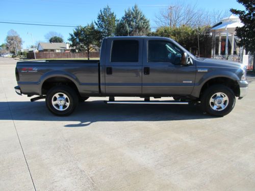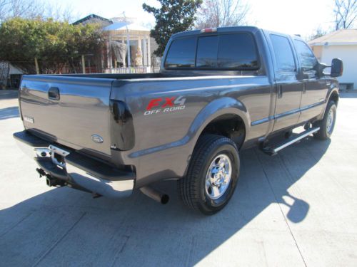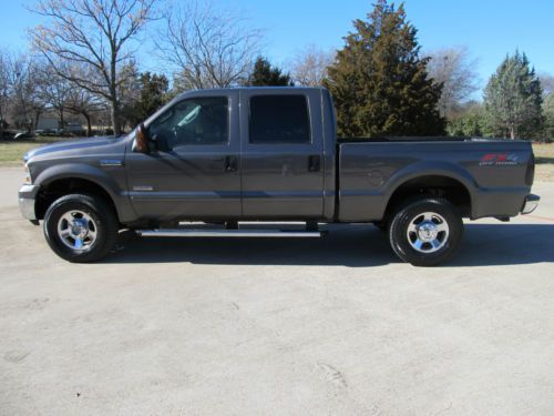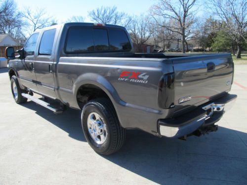 2005 Ford F250 Lariat 3/4 Ton Super Crew FX4- 4WD Short Bed! Powered by 6.0 liter V8 power stroke turbo diesel engine, accompanied by an automatic transmission, and patented FX4 ford four wheel drive. Wow!! This is a Texas owned trade in!! This is a super clean truck! This truck rides and drives fantastic. This powerful diesel runs strong, the transmission is solid. This Powerstroke has lots of extras! EGR cooler delete, EGR delete, custom exhaust, cooling filter, and many more! Besides running fantastic it's good looking too. Lariat package, Powered Leather seats, power windows, power locks, power tow mirrors, power sliding rear glass, premium sound system with CD, tow package, goose neck hitch, ice cold AC, cruise control, tilt wheel, , keyless entry, tow package, and much, much more!!! Buy this truck with confidence! It's as good as it looks, and it is very nice! Plus this truck is Carfax certified, and qualifies for the Carfax buy back guarantee. This is an outstanding vehicle! Buy with confidence and save thousands!!! Ask us about extended warranty's, we have very competitive pricing and great coverage options. We can help facilitate low-cost shipping directly to your door. Like many used vehicles, this one has a few door dings, giving this quality vehicle it's own character. INCLUDED OPTIONAL EQUIPMENT