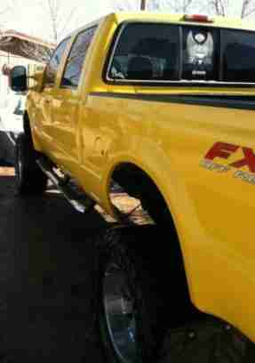 For sale Screaming Yellow Ford F-250 FX4, Truck has 8.5 inch suspension lift with 38 inch Nitto Mud Grappler tires, also has cold air S&B cold air intake, Cowl Induction Hood, Very nice black leather interior that has been well taken care of, Sun Roof. Has tow package. A/C ice cold, All scheduled maintenance, Always garaged, Custom wheels, Excellent condition, Fully loaded with all the goodies, Tinted Windows, Crack in front Window, small dent in drivers side top side of bed. Looks & drives great, Mostly highway miles, Must see, Never seen snow, No accidents, Non-smoker, Seats like new, Title in hand, Very clean interior, Well maintained.